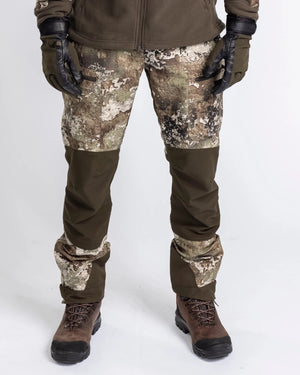 Eine Jagdhose, die perfekt für die mobile und aktive Jagd geeignet ist. Sie ist mit 4-Wege-Stretch mit hoher Dehnbarkeit in den Knien und im Gesäß ausgestattet, was das Bewegen, Sitzen oder Bücken erleichtert. Der Stoff ist hoch atmungsaktiv und die Beine haben Belüftungsreißverschlüsse, die geöffnet werden können, um den Luftstrom zu erhöhen. Das Official True Timber® Camou sorgt für gute Tarnung. Die Beinenden sind verstellbar und können mit Reißverschlüssen geöffnet werden, um das Anziehen von Stiefeln zu erleichtern. Die Hose hat vier Beintaschen, von denen zwei mit Reißverschlüssen versehen sind.
