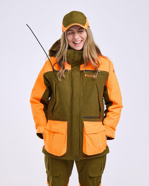 Diese Jagdjacke für Damen wurde für den aktiven Einsatz in der Natur und im Revier entwickelt und bietet zuverlässigen Schutz vor Wind und Regen. Sie besteht aus einem zweilagigen, laminierten Material mit atmungsaktiver, wind- und wasserdichter Membran, verschweißten Nähten und einer PFC-freien, wasserabweisenden Imprägnierung. Das luftdurchlässige Mesh-Innenfutter und seitliche Ventilationsreißverschlüsse sorgen auch bei intensiver Bewegung für optimale Belüftung.