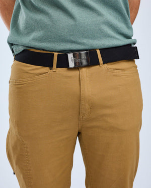 Klassisch gewebter Kanvasgürtel mit stylischer Metallklemmschließe, darauf das Pinewood-Logo, sehr robust.