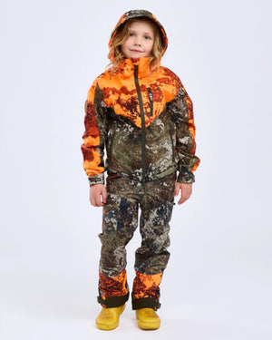 Funktionell und in cooler Optik - wind- und wasserdichte Camou-Hose für den Jagdnachwuchs.