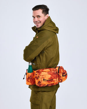 Die Pinewood® Ranger Camou Waist Bag ist eine flexible und dennoch robuste Tasche im offiziellen True Timber® Camou-Muster mit mehreren funktionalen Reißverschlussfächern unterschiedlicher Größe. Verfügt außerdem über ein Fach mit Flaschenhalter, sodass Sie tagsüber ausreichend Flüssigkeit zu sich nehmen können. Die Tasche hat mehrere D-Ringe, in denen Sie beispielsweise das Messer befestigen können. Es kann um die Taille oder diagonal über der Brust getragen werden. Taillenumfang bis 180 cm.
