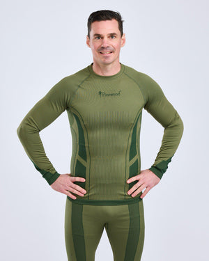 Das Baselayer-Set in körpernaher Passform bietet durch gezieltes Body Mapping einen erhöhten Tragekomfort – es belüftet stark transpirierende Körperpartien und speichert Wärme dort, wo der Körper schneller auskühlt. Das Set überzeugt im sportiven Design mit nahtlosen Seiten, Kontrast an den Körperpartien und einem klassischen Rundhalsausschnitt. Das Ergebnis: ein leistungsstarkes Baselayer, das den ganzen Tag über frisch und warm hält.