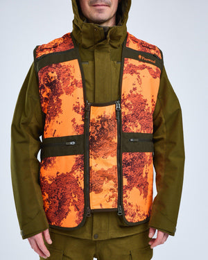 Die Zip-In-Erweiterung kann im Reißverschluss der Weste befestigt werden um die Weste zu vergrößern und so bei kalten Jagdtagen als Signalweste über der Jacke getragen werden.