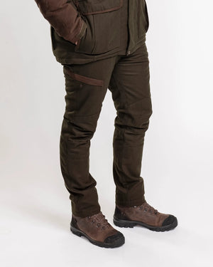 Nydala Wool trousers are soft and comfortable trousers in a wool blend material. The wool is warming, while a mesh lining gives them an airy comfort. Pre-bent knees and an elastic waist makes them flexible and adaptable. The front has two hand pockets and two leg pockets with hidden zippers. A zipped pocket can also be found in the back. The trousers have nice details in synthetic leather, and they can easily be combined with a wide set of jackets and shirts in the Pinewood collection.