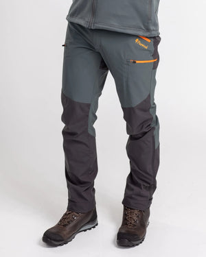 Functional outdoor pants in 4-way stretch, with good ventilation part in the seat and in the lower parts of the legs. Light in weight. Windproof and water repellent. Equipped with membrane in the seat and from the knees down. Four pocket design with zipper closing. Adjustable waist. Boot hooks. No taped seams. Treated with organic and fluorocarbon free impregnation - Bionic Finish® Eco for extra water repellent properties. Suitable for Allround, Fishing, Dog Sports, Hiking.