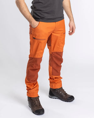 Outdoor/hiking trousers made in our own durable water repellent TC-Lite™ fabric. Regular fit. Treated with organic impregnation-Bionic Finish® Eco for extra water repellent properties. The trousers have elastic 4-way stretch material on the knee and back for greater fit and comfort. Opening ventilation for extra air flow. Dual leg pockets with zippers and elastic waistband. Articulated knees.