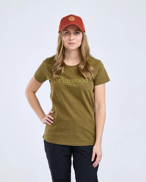 Fitted t-shirt in soft cotton with a Pinewood motif on the chest. Round-necked. Feminine cut. This garment has been manufactured to the Oeko-Tex® standard.