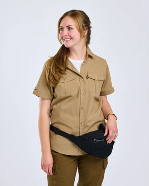 The Safari short-sleeved women’s shirt is made from pre-washed fabric for extra softness and breathability, keeping you cool in hot weather. Its elegant design is complemented by two practical chest pockets with buttons. With durable quality and a feminine cut, this shirt is bound to become a wardrobe favourite, perfect for both work and outdoor adventures, whether at home or abroad.