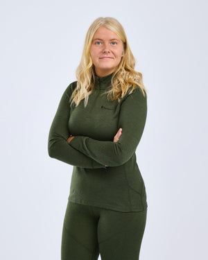 The Abisko merino base layer with half zip, is an underwear shirt for her, qualified to work as base layer all year round. It regulates the body temperature to a comfortable level both indoors and outdoors and can be used at home, as nightwear, when skiing, fishing, hunting, walking running or cycling (the body is dry, because the merino wool fibre in the fabric absorbs moisture).