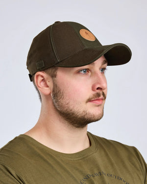 Wind- and waterproof cap with a Pinewood® logo in synthetic leather on the front. The cap can be adjusted with a plastic buckle at the back and has a twig holder on the left side.