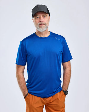 This men's performance T-shirt features an airy mesh construction that allows moisture to evaporate through the fabric during intense activity. Made from a lightweight, easy-care sport fabric that resists wrinkling, it’s ideal for training, hiking, or any high-movement activity. The fabric is also Oeko-Tex® certified. The T-shirt includes a sleek reflective print on the front, enhancing visibility.