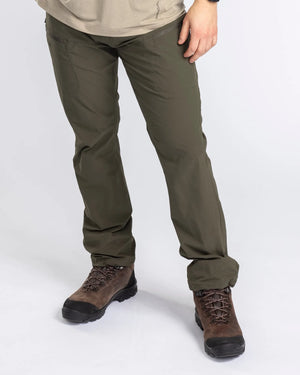 These flexible men’s trousers feature built-in 4-way stretch and UV protection against the sun. The fabric is equipped with a ripstop function to prevent any potential tears in the fabric from further expanding. It holds a bluesign® certification, signifying that it has been manufactured according to stringent safety and environmental standards. Additionally, these trousers are quick-drying and treated with an impregnation that repels mosquitoes and ticks from the fabric. The leg ends are adjustable with drawstrings for a tighter fit, and in the waist, there's a belt with a convenient plastic buckle. The trousers have two leg pockets with zippers, two open hand pockets, and a small hidden safety pocket with a zipper inside one of the hand pockets for secure storage of keys or similar items. They are lightweight and easy to pack in your bag, making them perfect for travelling. The remarkably high stretch ensures that these trousers are comfortable and don't restrict movement.