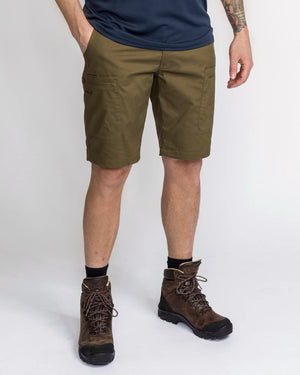 Classic shorts with regular fit for everyday life, hiking and active outdoor adventures. Durable open-air shorts with light elastic waist. Made in our own TC stretch fabric for maximum breathability and comfort. A classic model with practical pockets and normal high waistband. Shorts for those who like to be outdoors. At the front there are two open hand pockets and two leg pockets with zippers. At the back a back pocket with a zipper. The fabric is treated with organic impregnation - Bionic Finish® Eco for extra water and dirt repellent features.
