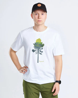 This soft T-shirt for men consists of 100% recycled materials, a blend of cotton and polyester, featuring a captivating Pinewood print on the front. What sets it apart is the way the fabric is dyed, derived from recycled materials, eliminating the need for a new dyeing process. This results in significant water and energy savings, yielding an eco-friendly, melange fabric.