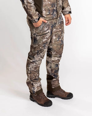 Functional hunting trousers in Official True Timber® Camou with wind- and waterproof membrane and taped seams. They are durable and flexible with pre-bent knees and elasticated waist with two-way stretch in the back. You’ll find several clever pockets with zippers and bullet holders and a small pocket on the calf with an integrated reflex band for extra safety. Buttons on the lining makes it possible to attach suspenders for a closer fit. The leg bottoms can be adjusted with zippers, plastic buckles and burdocks. The trousers have ventilation zippers on the sides that can be opened for increasing the air circulation and reducing sweat and damp.