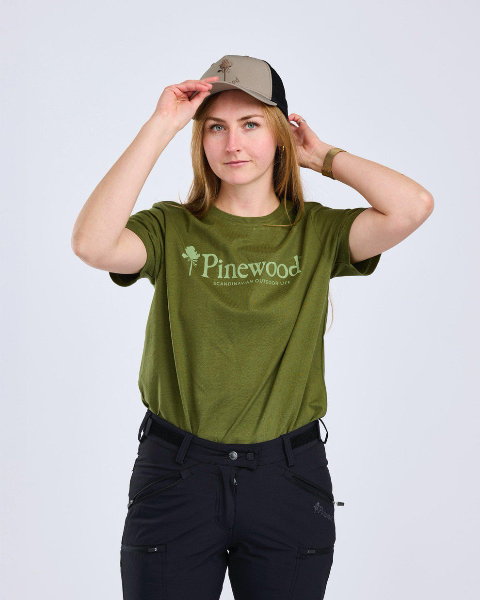Fitted t-shirt in soft cotton with a Pinewood motif on the chest. Round-necked. Feminine cut. This garment has been manufactured to the Oeko-Tex® standard.