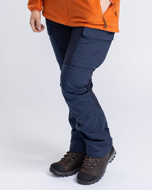The Dog Sports Trainer women's trousers are a reinforced version of our base model 3282, now with a wind- and waterproof membrane and taped seams to further enhance protection against the elements. In addition to the water- and windproof construction, the trousers feature a waxed surface and built-in TC-stretch, offering superior flexibility and freedom of movement. High breathability is complemented by ventilation zippers for effective temperature regulation during high activity.