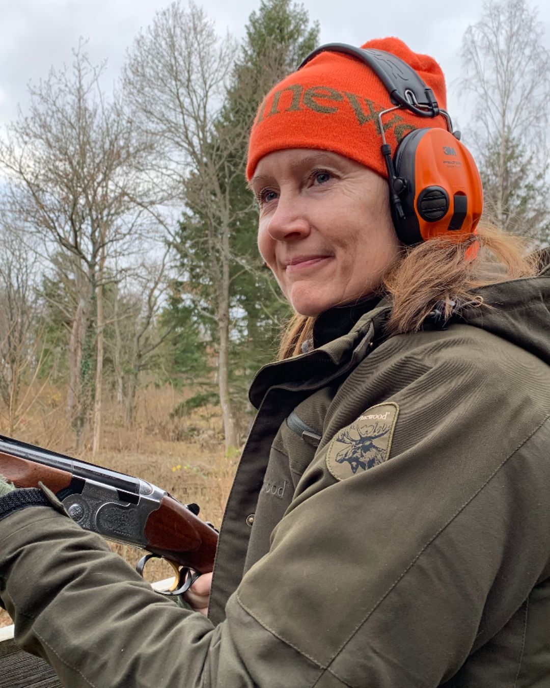 – Jeg ble tidlig kjent med jaktklær. Både jakt og natur har alltid vært sentralt i familien vår. Foreldrene mine jakter, mannen min og jeg jakter, og nå gjør også barna våre det. Jeg er spesielt glad i drevjakt på rådyr. Vår lille dachshund Truls er enestående – han er født til å jakte!