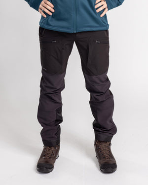 Abisko Adventure er en bukse med komfortabel fireveis stretch i hele buksen. Bena og buksebaken har et ekstra slitesterkt stoff med Rip-stop. Stoffet har en myk innside som føles behagelig mot huden. Med disse egenskapene, inkludert vår nylon-stretch og forsterkninger i Nylon Oxford, er buksen perfekt til turer i tett terreng og på fjellet. Kraftige sømmer med doble sting for ekstra styrke. Stoffet er behandlet med en miljøvennlig impregnering som gjør det vannavvisende. Glidelåsen for lufting i sidene kan åpnes for å slippe ut overskuddsvarme og øke luftgjennomstrømningen ved høy aktivitet. Midjebåndet med borrelås kan strammes slik at buksen alltid holder seg på plass når du er i bevegelse. Bøy i knærne gir bedre fleksibilitet nedre del av buksebena er forsterket med PU-belagt Nylon Oxford som beskytter mot fukt og terreng. Dette er en fleksibel og lett bukse som er utstyrt med en støvlekrok for å holde buksebena på plass. Den har fire lommer med glidelås for trygg oppbevaring. Skrittet har en kile for ekstra komfort.