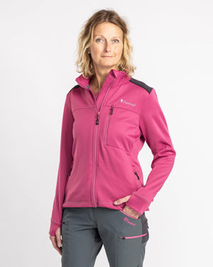 Abisko Power fleecejakke kan justeres nederst for en optimal passform. Den har to lommer foran og en brystlomme med glidelås for oppbevaring av ting.