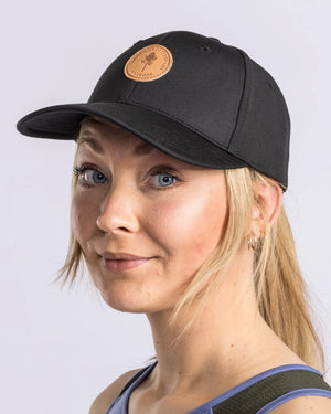 Kaps med Pinewood-merke i syntetisk skinn. Metallspenne i messing for enkel justering av passformen.