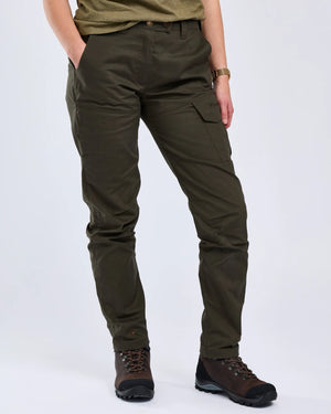 Finnveden Outdoor-bukser for dame er allsidige og funksjonelle, med en vokset overflate som gir vannavvisende egenskaper. De er laget av slitesterkt TC-stoff med stretch for optimal komfort og har en elastisk midje for bedre passform.