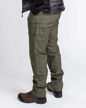 En storselger i vind- og vannavstøtende materiale. Finnveden er en serie med jakker og bukser som lett kan kombineres. Lommer med klaff og trykknapper på utsiden av bena. Mobiltelefon lomme og en lomme med glidelås på benet. Sikkerhetslomme med glidelås inne i høyre stikklomme. Forsterkning over knærne.
