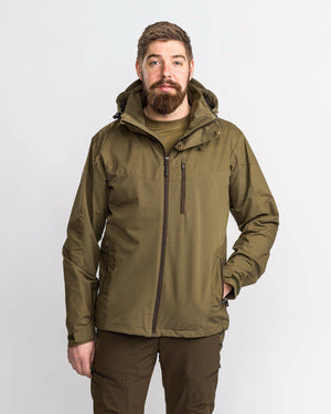 Pinewood Finnveden Hybrid jakke er en fleksibel og allsidig friluftsjakke med god komfort og høy stretch. Den har voksede partier på skuldre og ermer, mens resten av jakken er laget i stretchmateriale for økt bevegelsesfrihet og komfort. Jakken er behagelig å bruke under aktivitet og bevegelse. Den har avtakbar og justerbar hette med skjerm, romslige lommer med glidelås og en noe tettere passform.