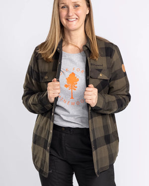 Vår klassiska Canadaskjorta finns äntligen till dam. Detta är en skön flanellskjorta i mjuk ullmix. Den är vadderad för extra värme och går att bära både som jacka och som mellanlager. Skjortan knäpps med tryckknappar och manschetterna går att reglera för att skapa en tightare passform kring handlederna. Den har två öppna handfickor samt två bröstfickor med tryckknappar.