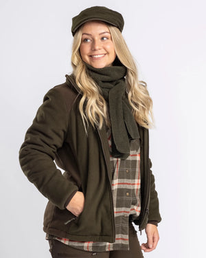 Harriette är vår tjockaste fleece med extra varm vaddering. Den är mjuk och tyst, vilket gör den perfekt till jakten eller under andra friluftsaktiviteter när det är kallt ute. Den är vindtät så den passar utmärkt under blåsiga dagar. Jackan har ribbade manschetter samt två handfickor, en bröstficka och en innerficka, samtliga med dragkedjor för säker förvaring. Botten av jackan går att reglera med elastisk dragsko.