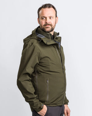 En lätt, vind och vattentät 3-lagersjacka med huva och tejpade sömmar. Genomtänkta ventilationshål i den höga kragen. Extremt vattentålig. Passar utmärkt likväl på fritiden som till och från jobbet. En jacka som klarar av riktigt regniga och blåsiga dagar. Jackan har en vattenavvisande envägsdragkedja i öppningen, dubbla bröstfickor, två handfickor, samtliga med dragkedja. Behandlad med ekologisk impregnering - Bionic Finish® Eco för extra vattenavstötande egenskaper. På sidorna finns det ventilationsöppningar. Reglerbar nertill med stroppar, ärmslut reglerbara med kardborre.