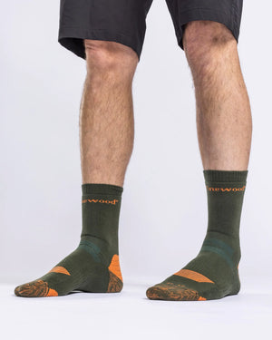 Mjuka och sköna strumpor i bomull med insida av frotté och platt söm vid tårna för extra komfort. Hälen, tår och trampdyna är förstärkta för att motverka slitage, och linningen är utformad för att förhindra att strumpan glider ned i skon under användning. Ovansidan har ventilationspartier som släpper ut överskottsvärme för en sval känsla. Materialet har dessutom en impregnering som håller mygg och fästingar borta från tyget.