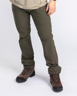 Tunna och rörliga herrbyxor med inbyggd 4-vägsstretch och UV-skydd mot solen. Tyget har försetts med ripstop-funktion som skyddar mot att eventuella revor i tyget rivs upp ytterligare, och innehar bluesign®-certifiering som påvisar att det har tillverkats enligt strikta säkerhets- och miljökrav. Dessutom är byxorna snabbtorkande och har behandlats med en impregnering som håller mygg och fästingar borta från tyget. Nederdelen på byxbenen går att justera med dragsko för en tightare passform och i midjan finns ett bälte med smidigt plastspänne. Byxorna har två benfickor med dragkedja, två öppna handfickor samt en liten dold säkerhetsficka med dragkedja inuti ena handfickan för säker förvaring av nycklar eller liknande. De är lätta i vikt och går smidigt att packa med sig i väskan, vilket är perfekt för resan. Den enormt höga stretchen gör att byxorna är följsamma och inte stramar åt någonstans.