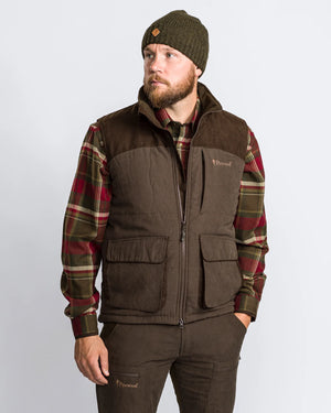 Vindtät väst i mjukt och tyst material. Vadderad för extra värme. Rymliga frontfickor med ljudlösa magnetknappar.