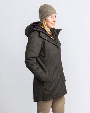 Pinewood® Vadderad vinterparkas för dam är gjord i ett material med hög andningsförmåga. Den är vind- och vattentät med tejpade sömmar för att stå emot vinterns alla väderomslag. Fyllningen av återvunnen polyester kommer från återvunna PET-flaskor och har blåsts in i kanalerna med 550+ Fillpower för extra värmande egenskaper. 2-vägsdragkedjan gör att jackan kan öppnas både uppifrån och nedifrån, vilket underlättar när du exempelvis sitter ned och vill knäppa upp nedifrån för mer rörlighet.